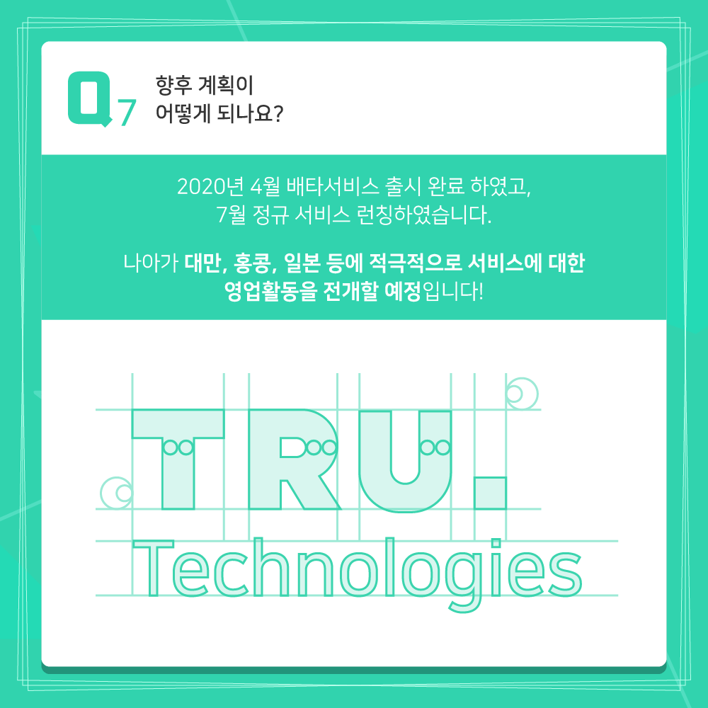 향후 대만, 홍콩, 일본 등에도 적극적으로 서비스 런칭을 진행할 예정이라는 트루테크놀로지스! 정말 기대가 됩니다~