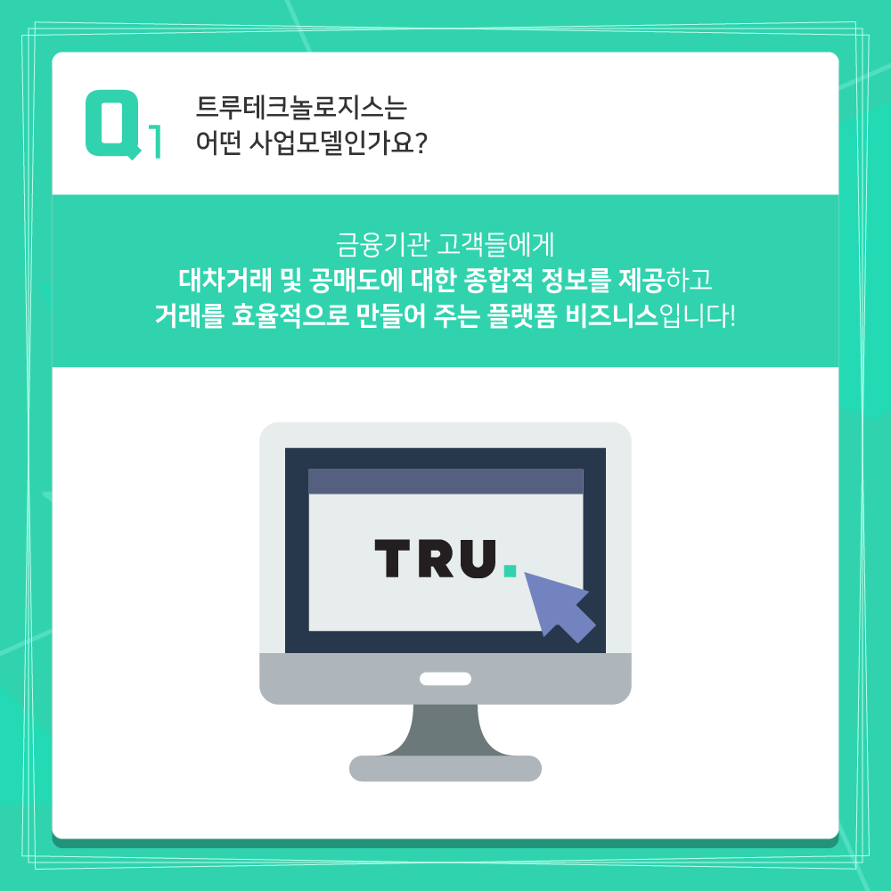 트루테크놀로지스는 금융기관 고객들에게 대차거래 및 공매도에 대한 종합적 정보를 제공하고 거래를 효율적으로