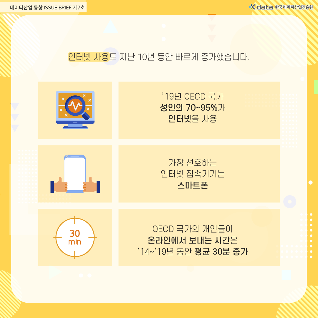데이터산업 동향 ISSUE BRIEF 2020년 제5호 : OECD 디지털경제 측정 공통프레임워크 개발을 위한 로드맵의 주요 내용 및 시사점 (0) | 2020.11.26 |