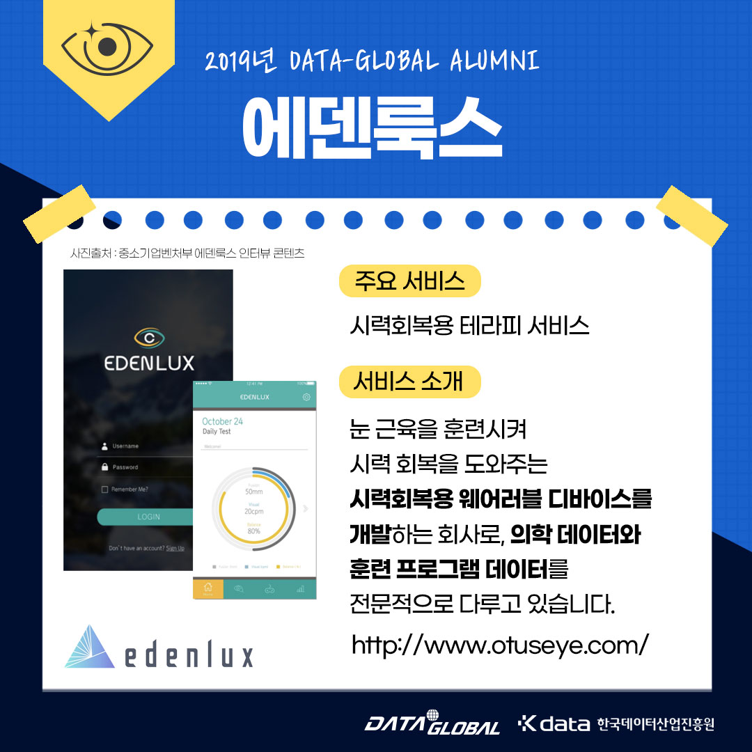눈 근육을 훈련시켜 시력 회복을 도와주는 웨어러블 디바이스 개발 회사로,