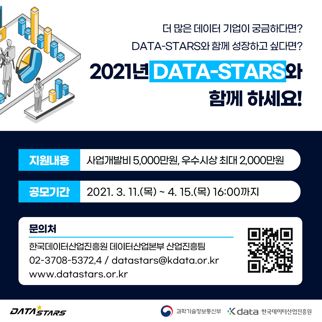 | [2021 DATA-Stars] 데이터 활용 사업화 지원 공모 공고 (0) | 2021.03.12 |