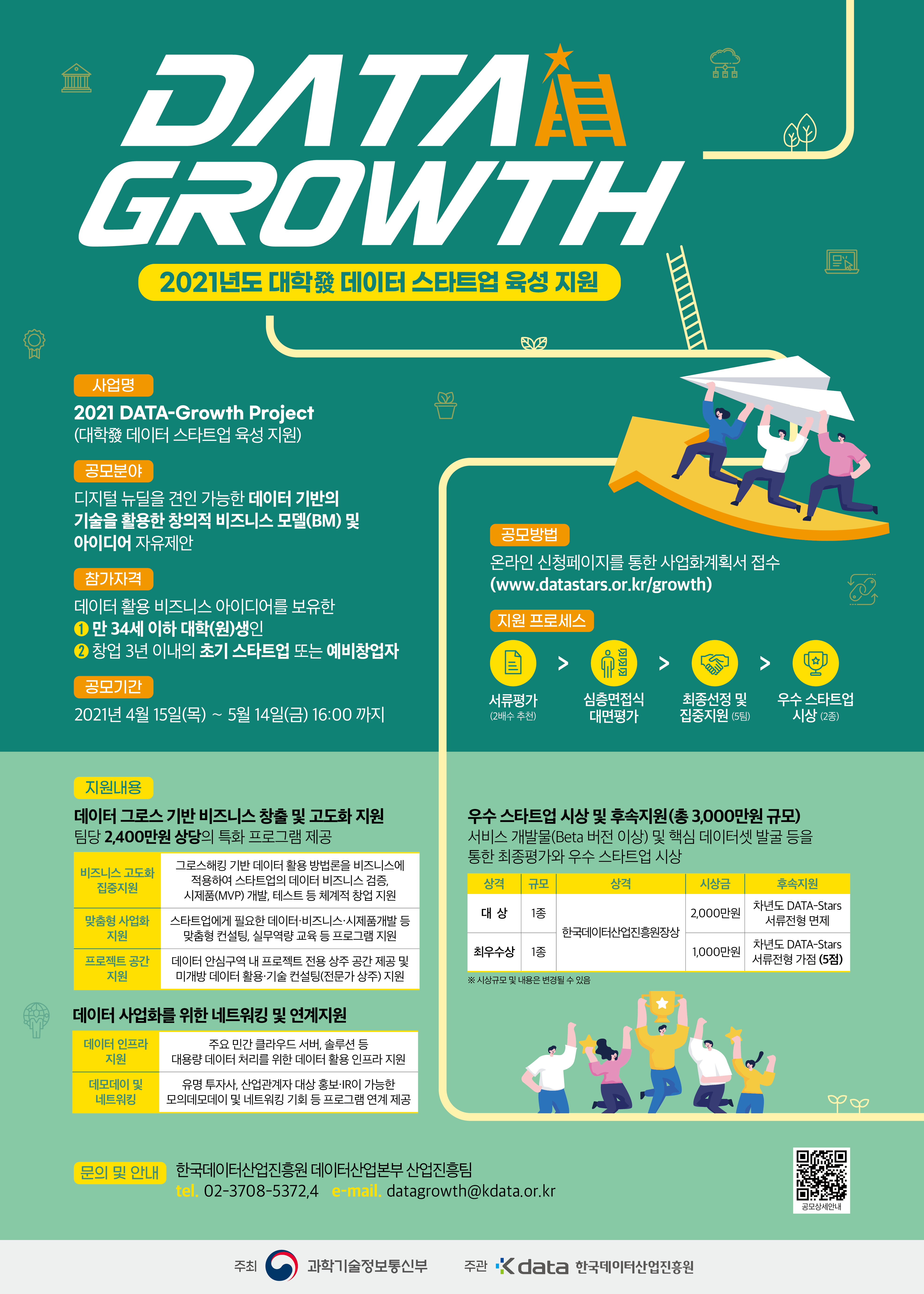 2021 DATA-Growth Project (대학發 데이터 스타트업 육성 지원) 공고