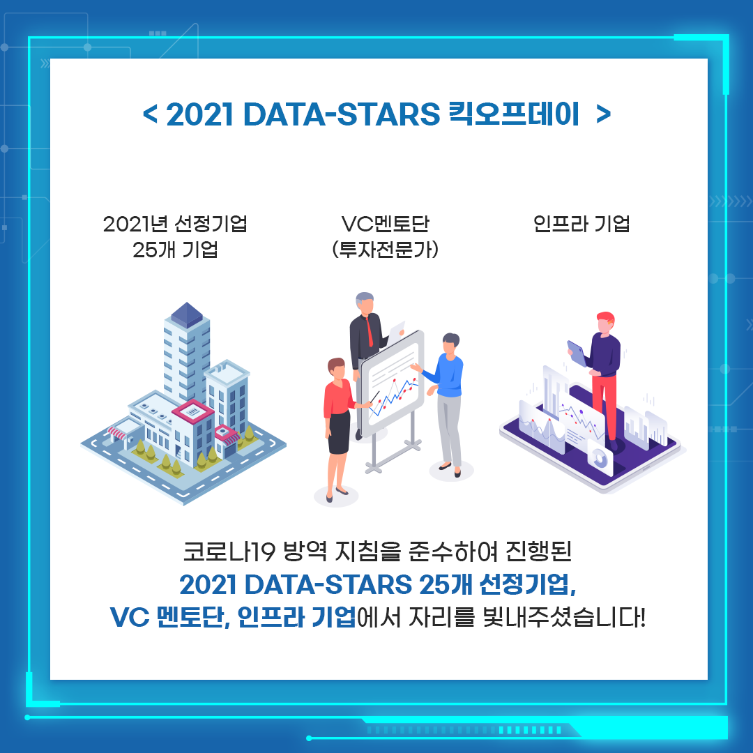 이번 행사에서는 2021 DATA-Stars 25개 선정기업, VC멘토단(투자 전문가), 인프라 기업이