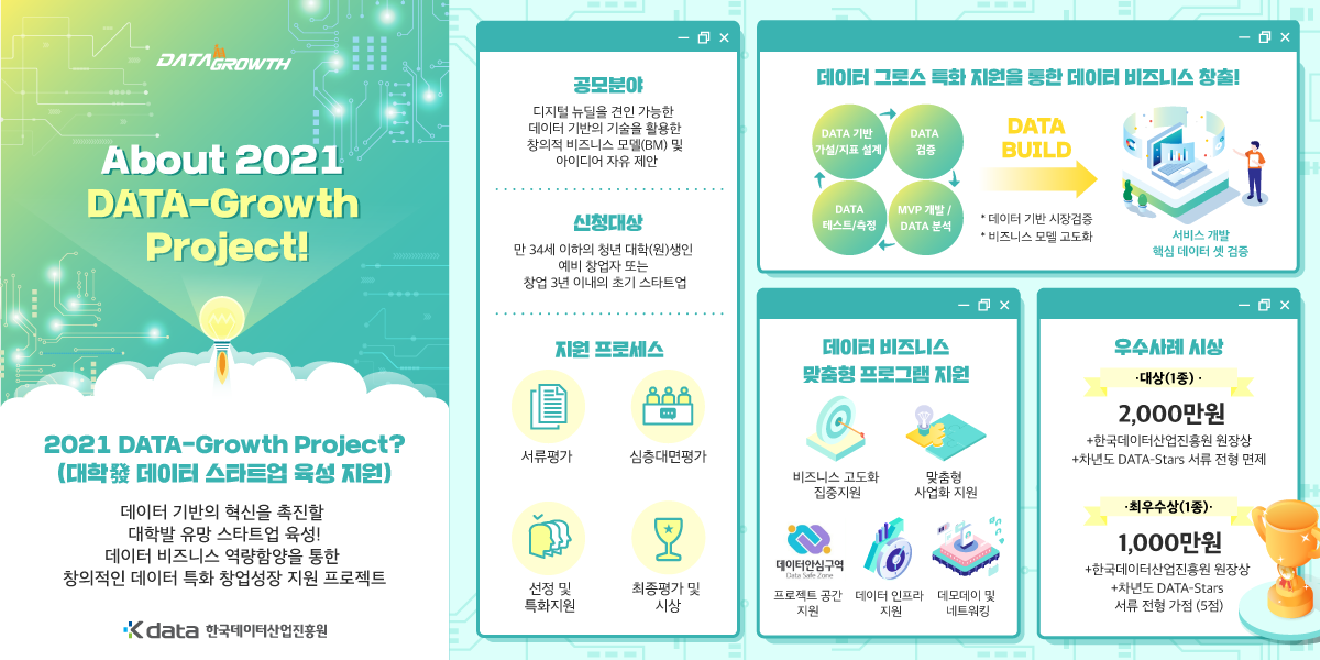 이번 '2021 DATA-Growth Project'은 아래와 같이 4가지의 지원 프로세스로 진행됩니다.