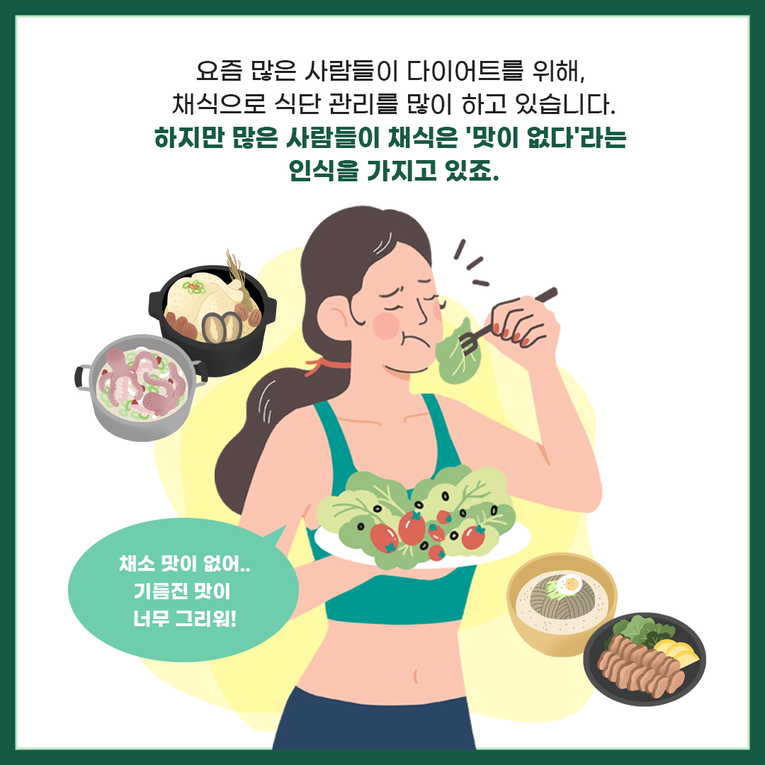 일반적으로 맛없는 채식으로 스트레스를 많이 받곤 하는데요.