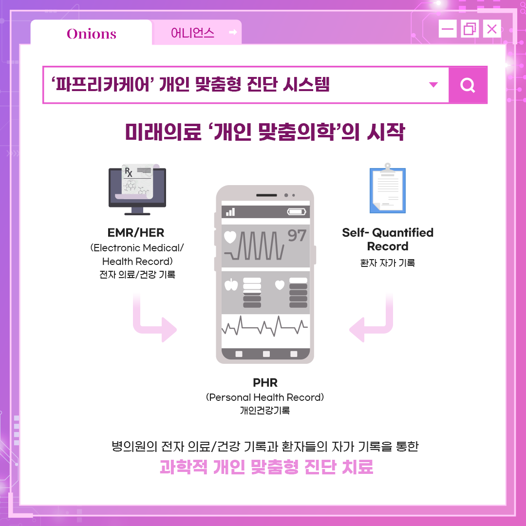 '어니언스'는 PHR 즉, 개인의료기록 데이터를 기반으로