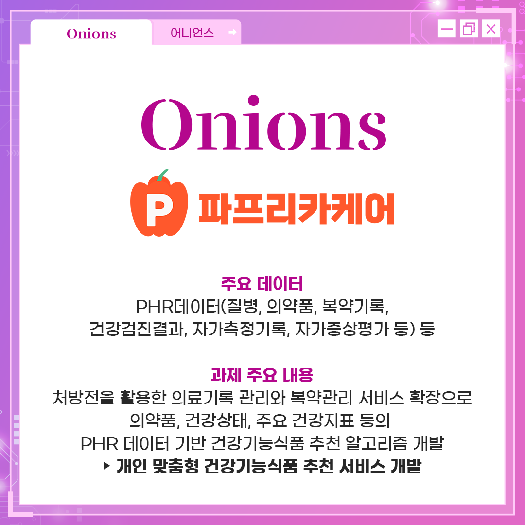'어니언스'는 PHR 즉, 개인의료기록 데이터를 기반으로