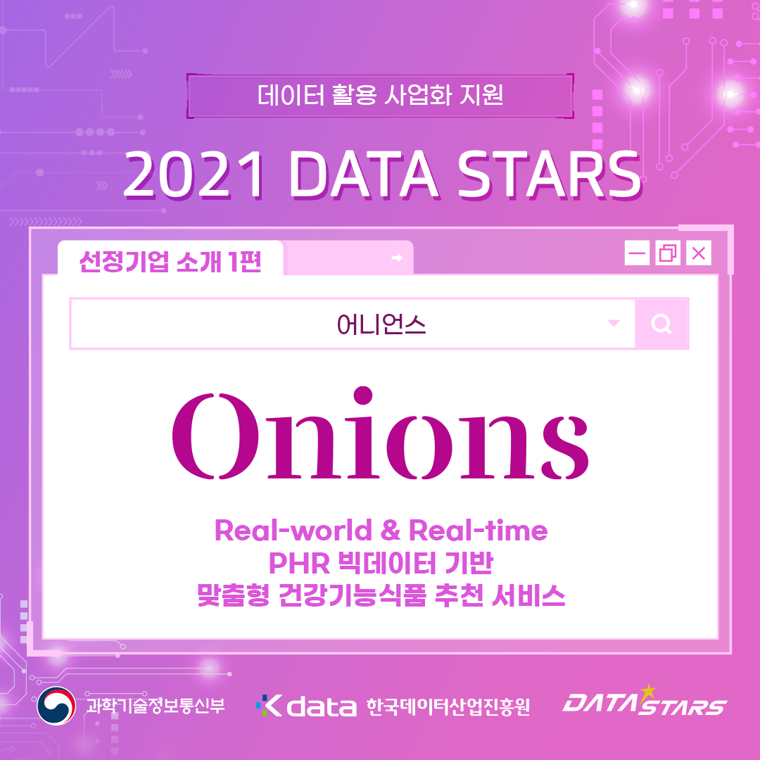 두 번째로 소개해드릴 <2021 DATA-Stars>에 선정된 스타트업은 바로 '어니언스'입니다!