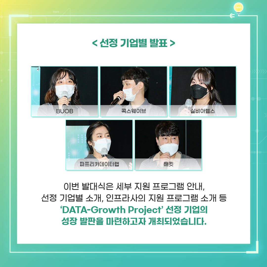 'DATA-GROWTH-PROJECT' 선정 기업의 성장발판을 마련하고자 개최되었습니다.
