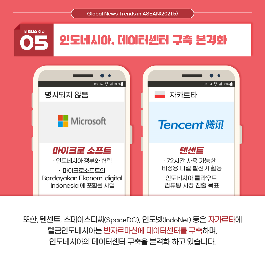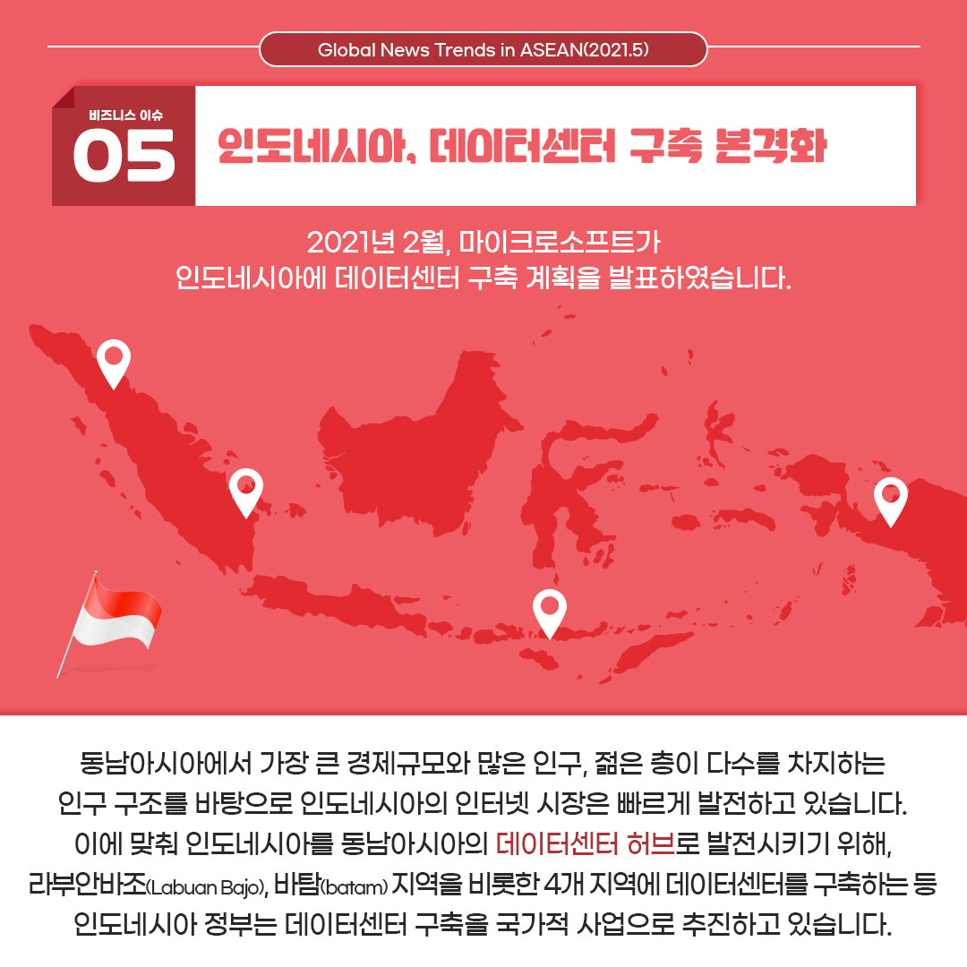 마지막 다섯 번째 이슈는 '인도네시아, 데이터센터 구축 본격화' 입니다.