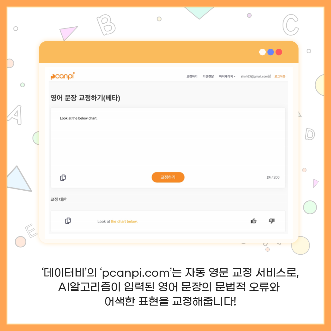 '데이터비'의 'pcanpi.com'은 자동 영문 교정 서비스로,