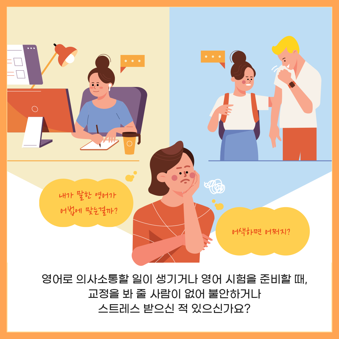 AI알고리즘이 입력된 영어 문장의 문법적 오류와 어색한 표현을 교정해줍니다.