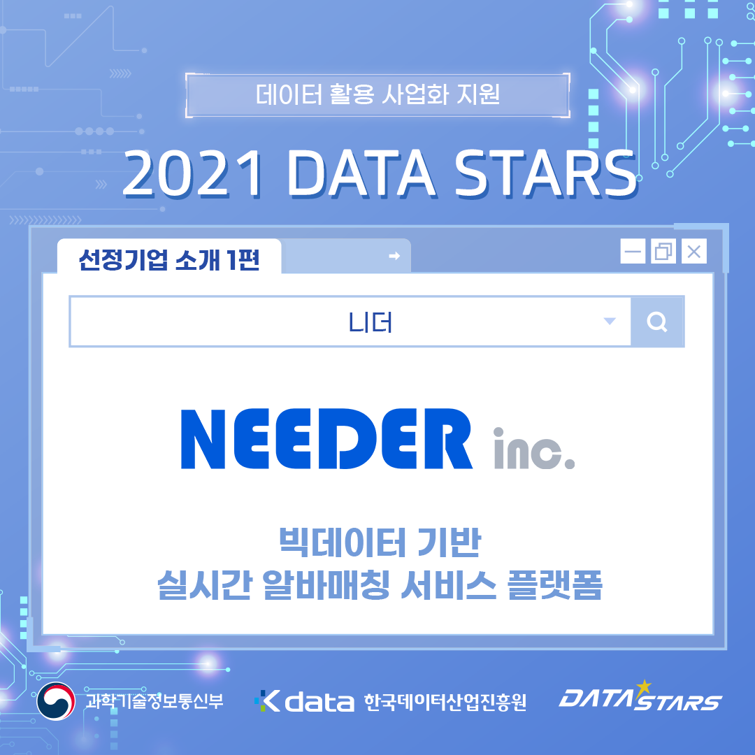 오늘 소개해드릴 <2021 DATA-Stars>에 선정된 스타트업은 바로 '니더'입니다!
