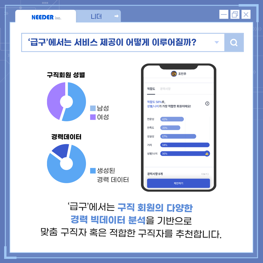 '급구'에서는 구직 회원의 다양한 경력 빅데이터 분석을 기반으로