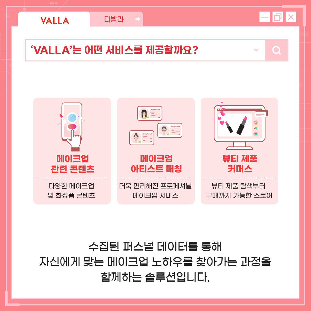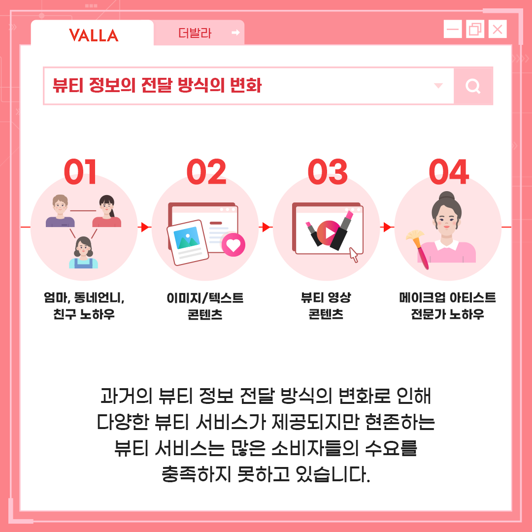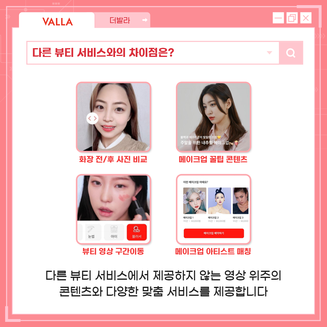 'VALLA'가 제공하는 뷰티 콘텐츠 큐레이션 서비스는 다른 뷰티 서비스에서 제공하지 않는