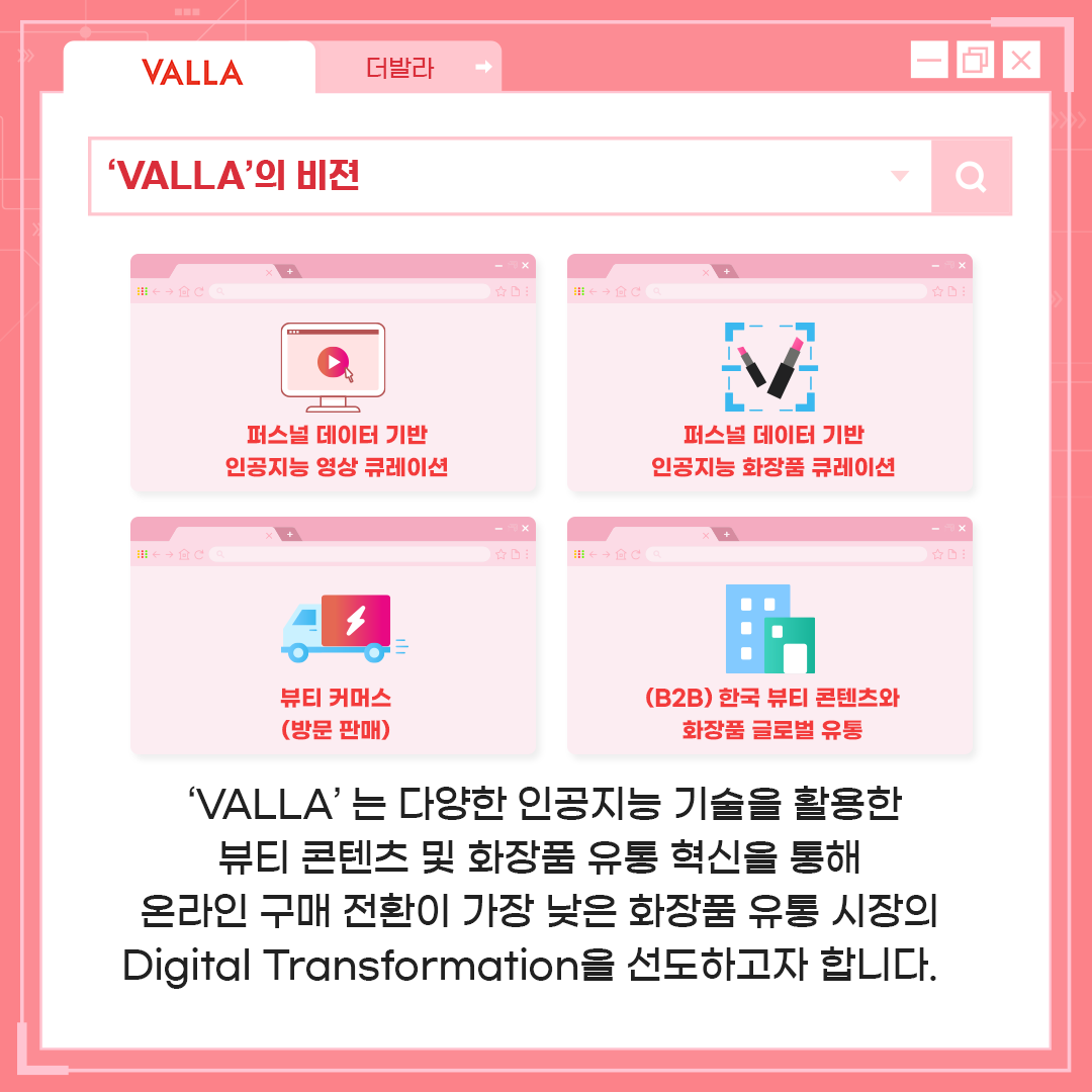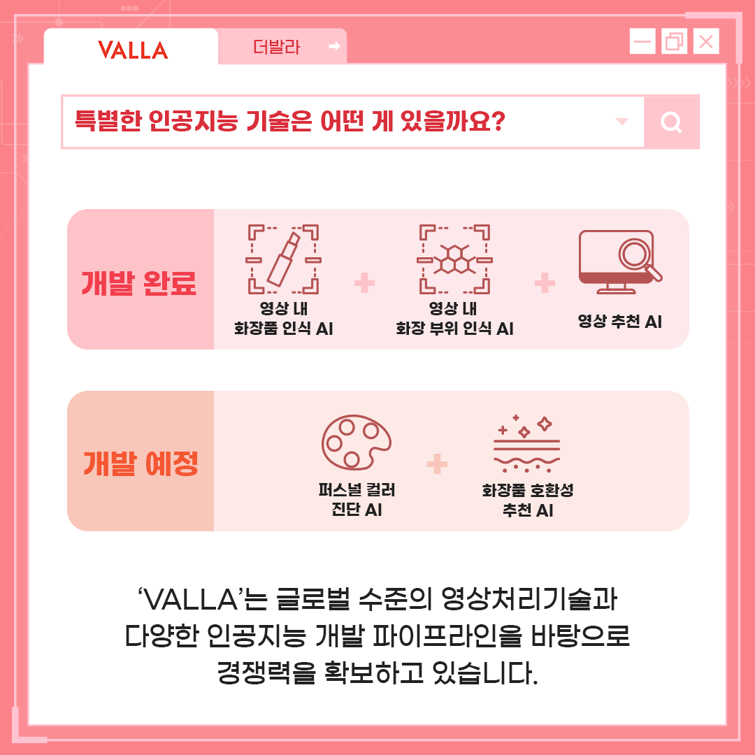'VALLA'는 다양한 인공지능 기술을 활용한 뷰티 콘텐츠 및 화장품 유통 혁신을 통해