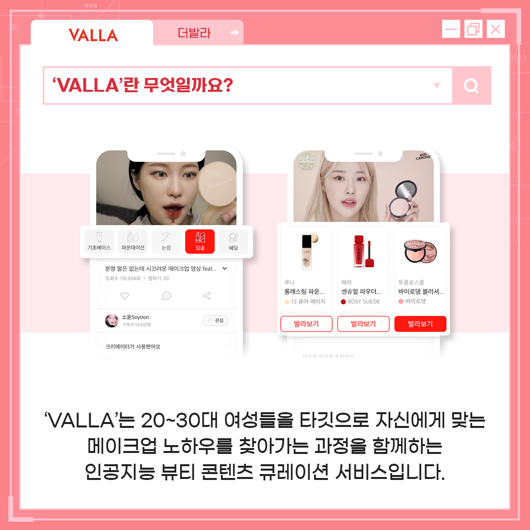 '더발라'가 제공하는 'VALLA'는 20대와 30대 여성들을 타깃으로 한 본인에게 맞는 메이크업 노하루를