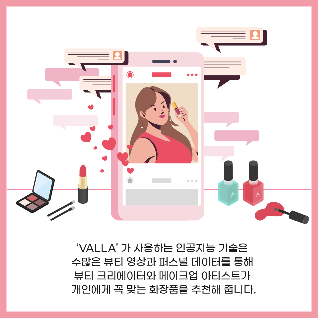 'VALLA'는 수많은 뷰티 영상과 퍼스널 데이터를 인공지능 기술을 통해 개인들에게 꼭 맞는 화장품을