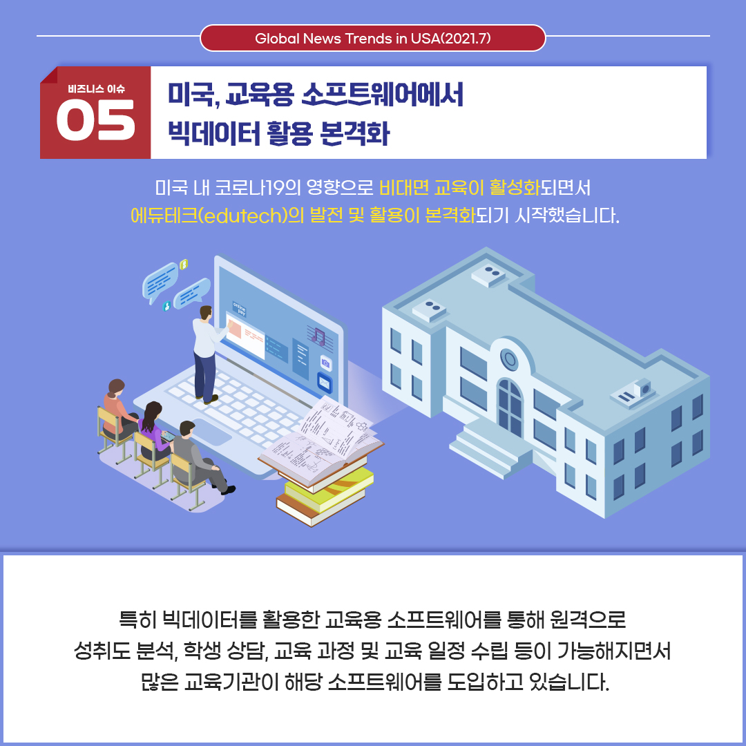 다섯 번째 이슈는 '미국, 교육용 소프트웨어에서 빅데이터 활용 본격화' 입니다.