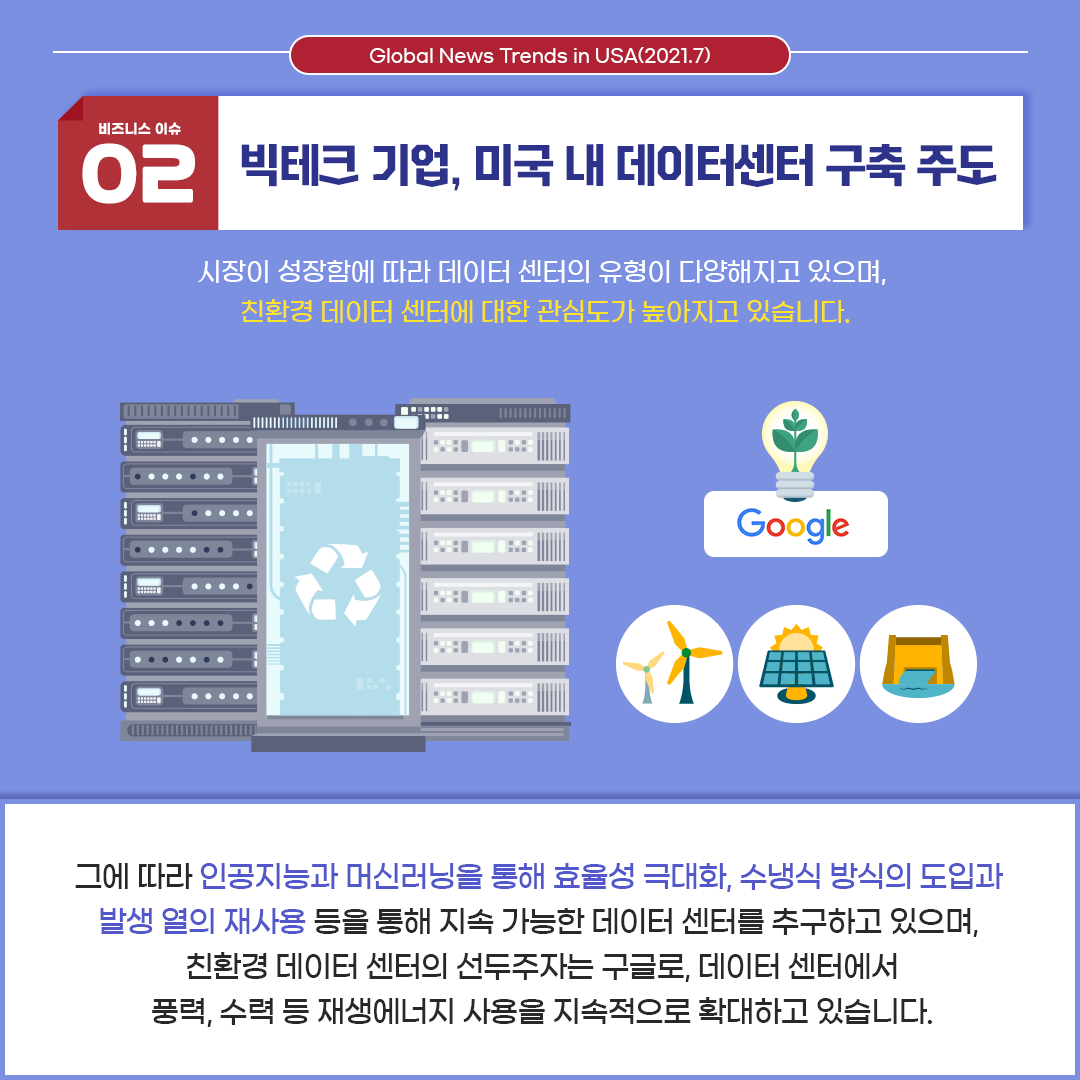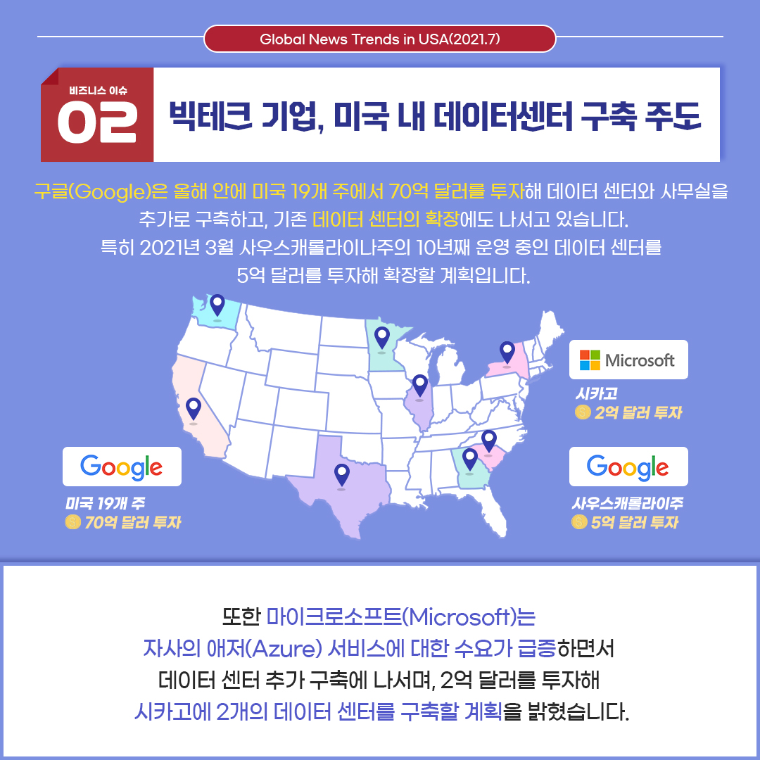 두 번째 이슈는 '빅테크 기업, 미국 내 데이터센터 구축 주도' 입니다.