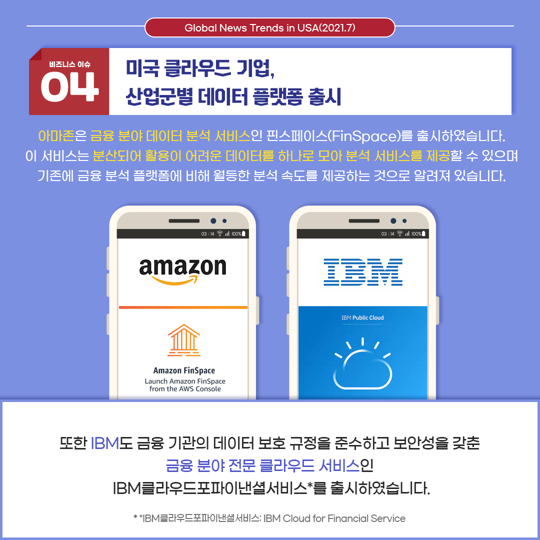 네 번째 이슈는 '미국 클라우드 기업. 산업군별 데이터 플랫폼 출시' 입니다.