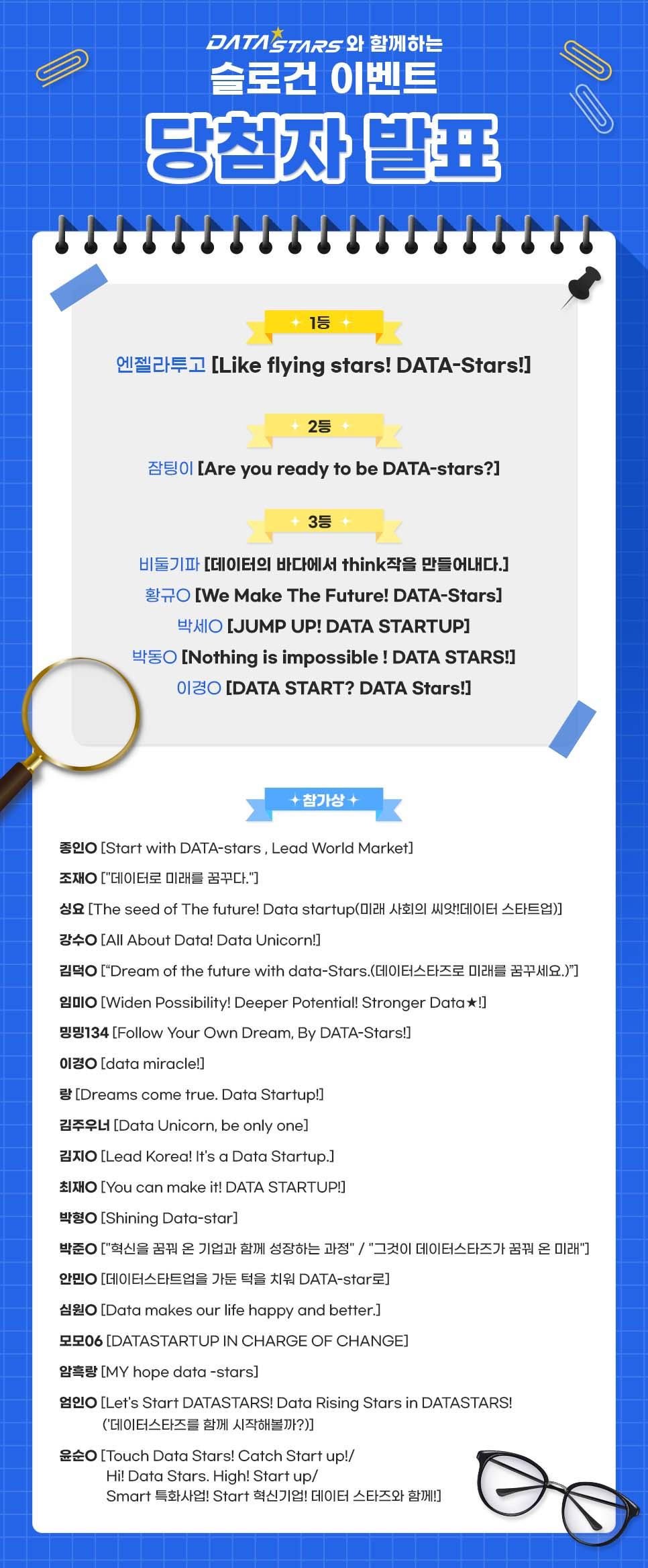 오늘은 지난 2주간 진행되었던 DATA-Stars 슬로건 이벤트의 당첨자 발표 소식을 가져왔습니다.