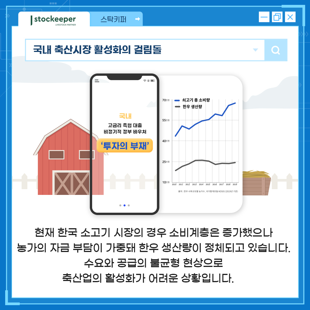 이렇듯 수요와 공급의 불균형 현상으로 축산업의 활성화가 어려운 상황입니다.