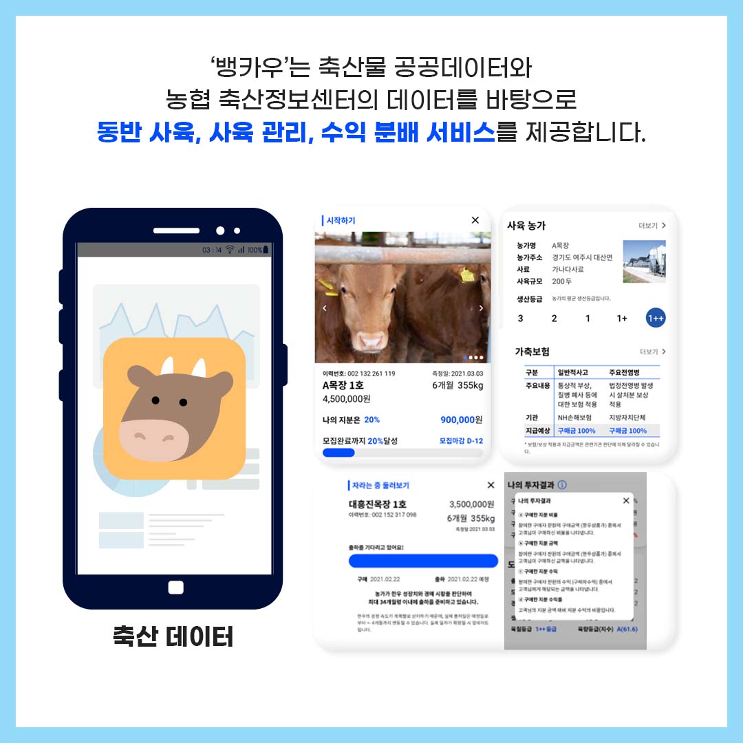 '뱅카우'는 축산물 공공데이터와 농협 축산정보센터의 데이터를 바탕으로