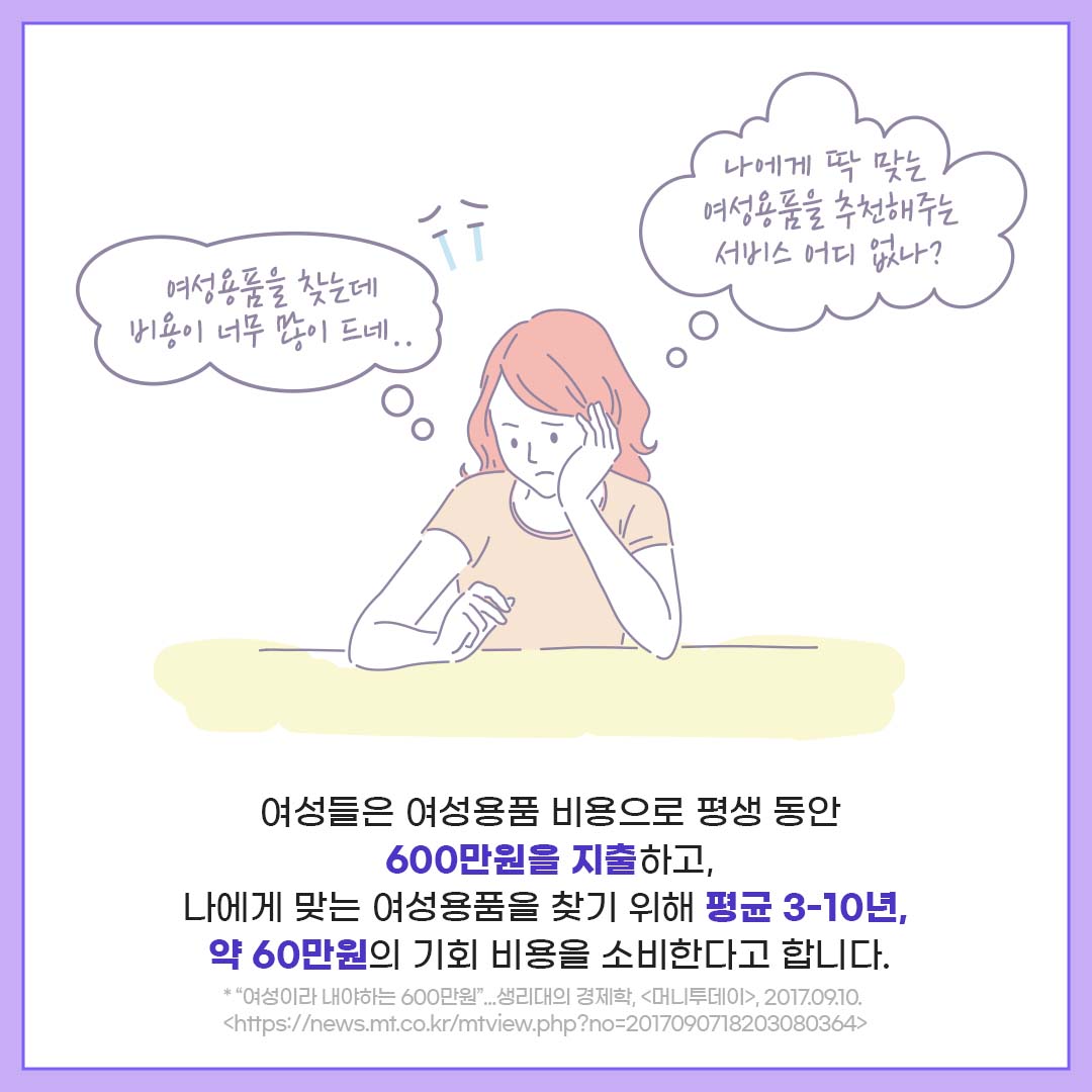 나에게 맞는 여성용품을 찾기 위해 많은 시간과 기회 비용을 소비한다고 합니다.