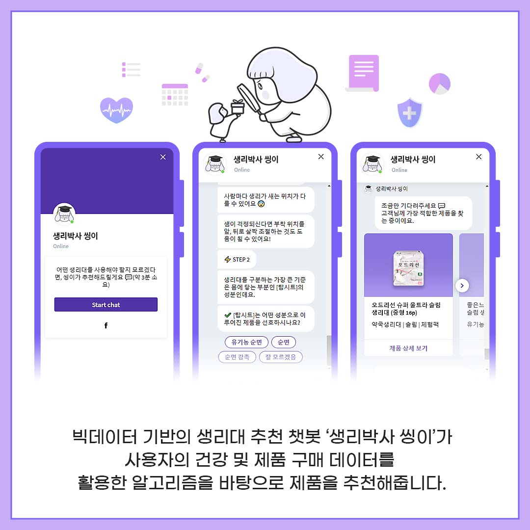 '먼슬리씽'은 빅데이터 기반의 생리대 추천 챗봇 '생리박사 씽이'가