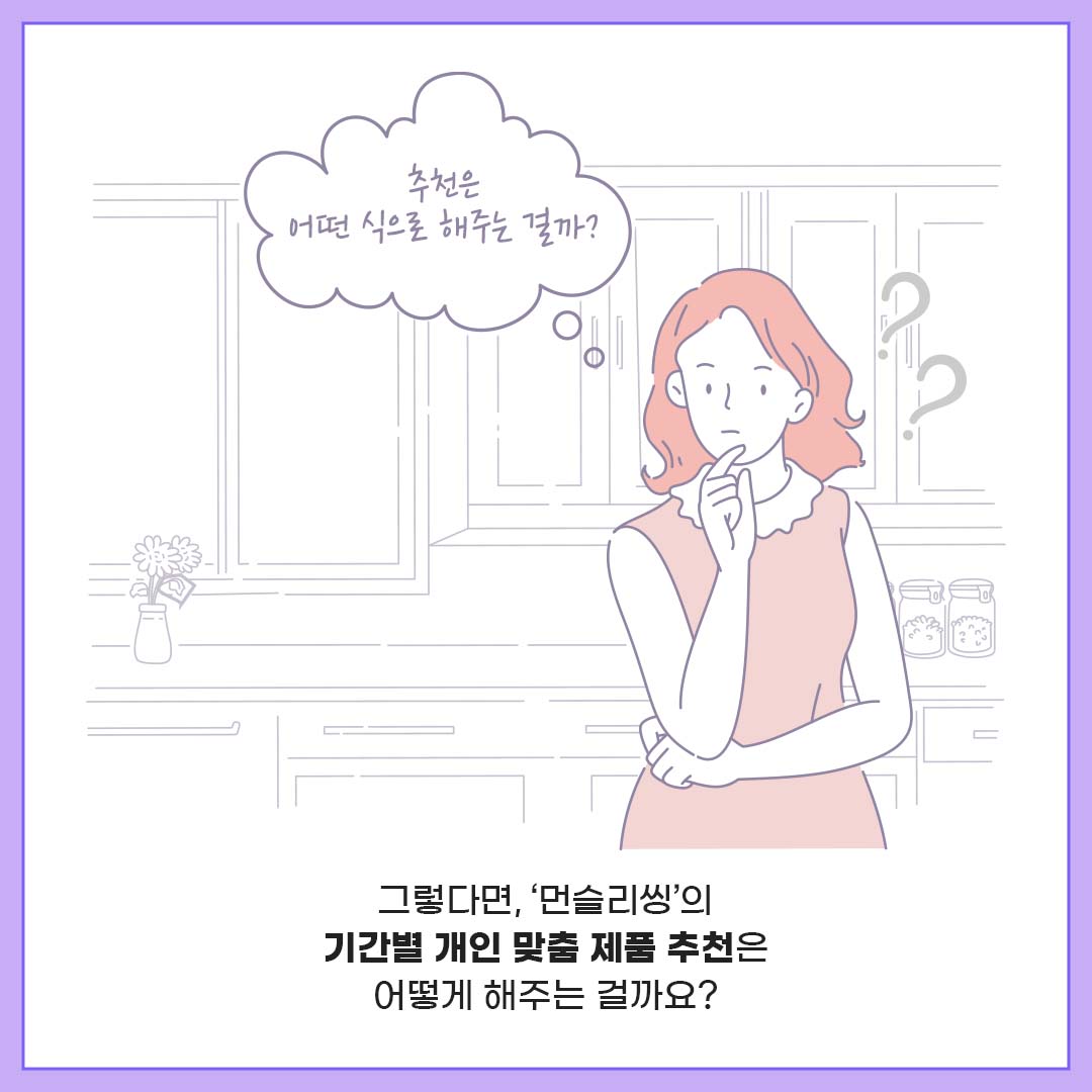 그렇다면, '먼슬리씽'의 기간별 개인 맞춤 제품 추천은 어떻게 해주는 걸까요?