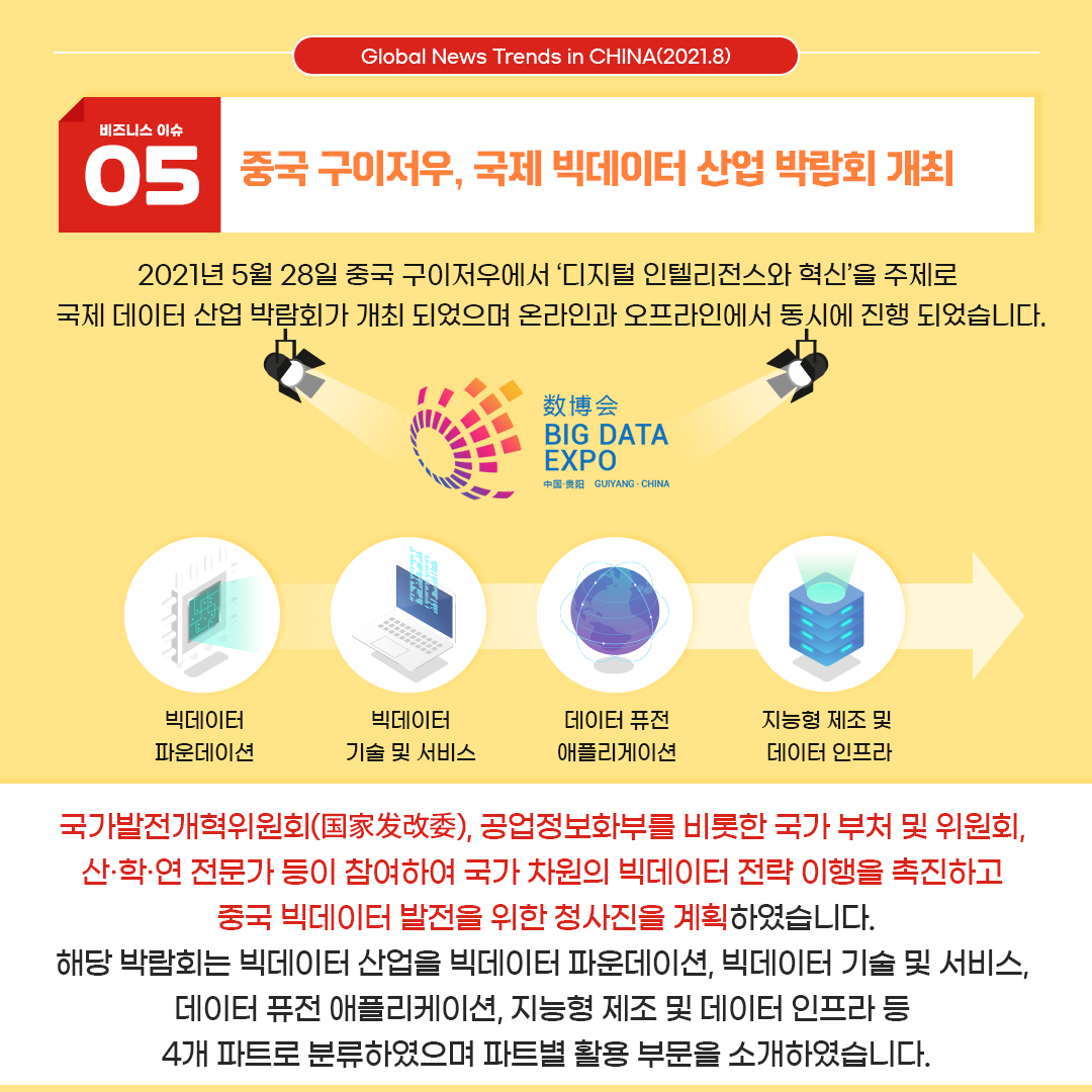 다섯 번째 이슈는 '중국 구이저우, 국제 빅데이터 산업 박람회 개최' 입니다.