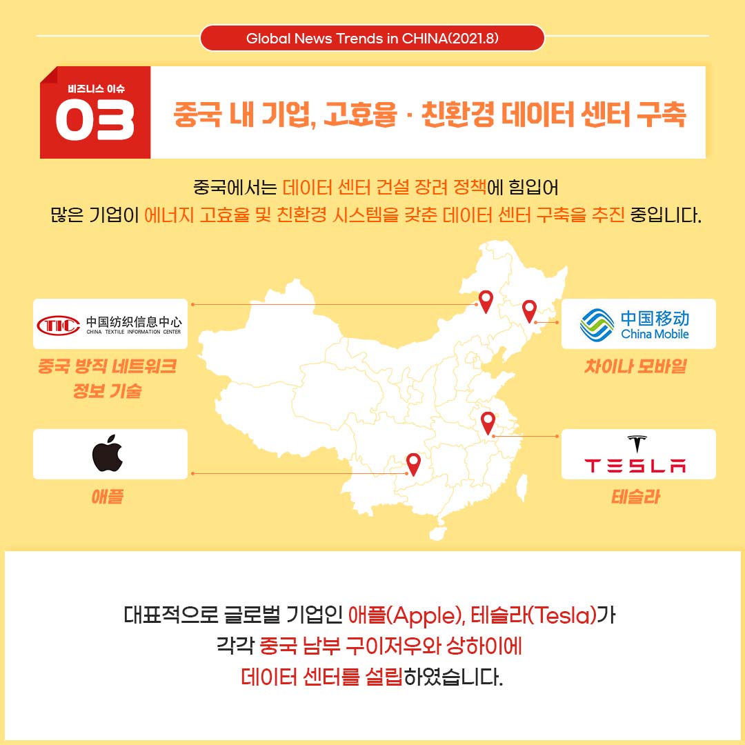 세 번째 이슈는 '중국 내 기업, 고효율 · 친환경 데이터 센터 구축' 입니다.