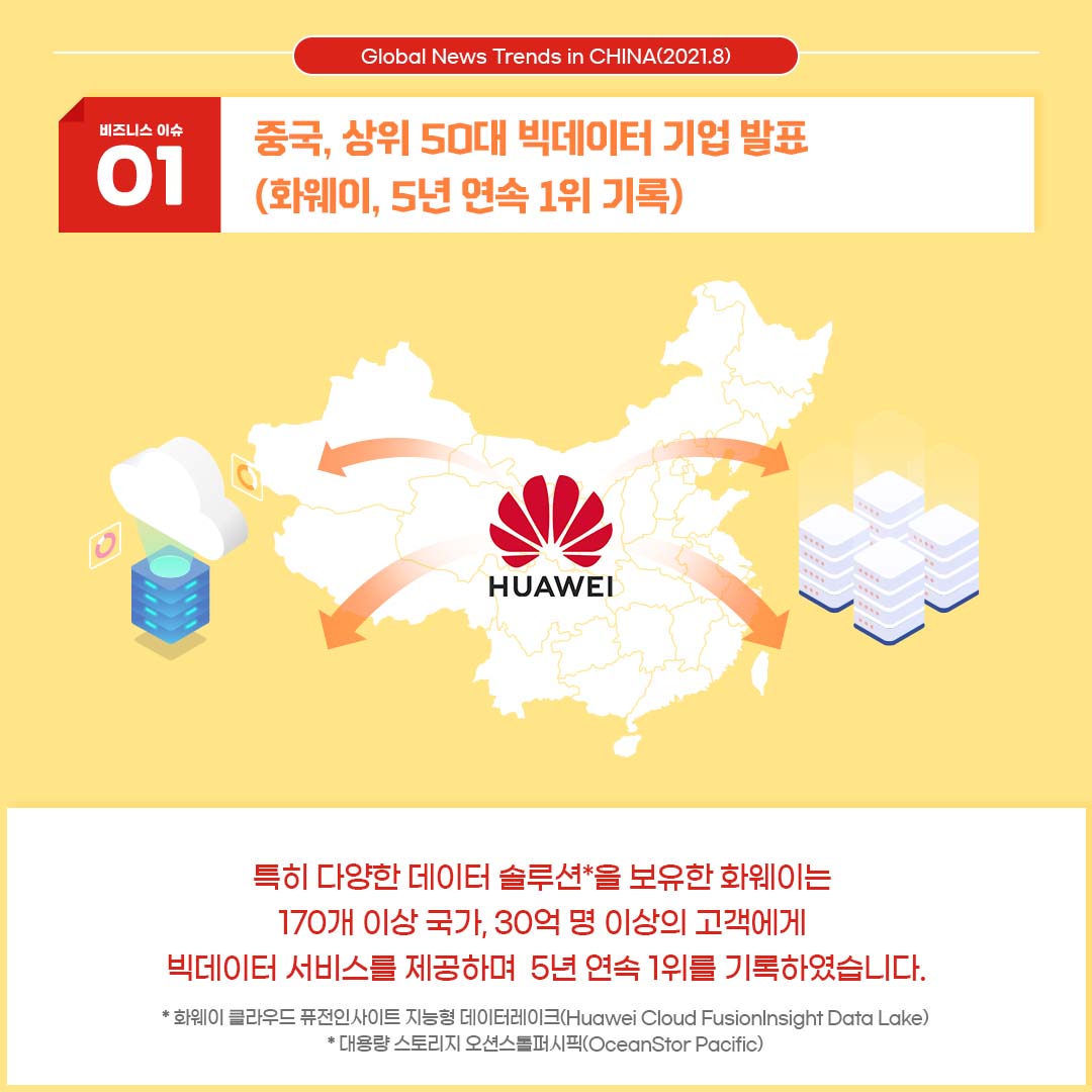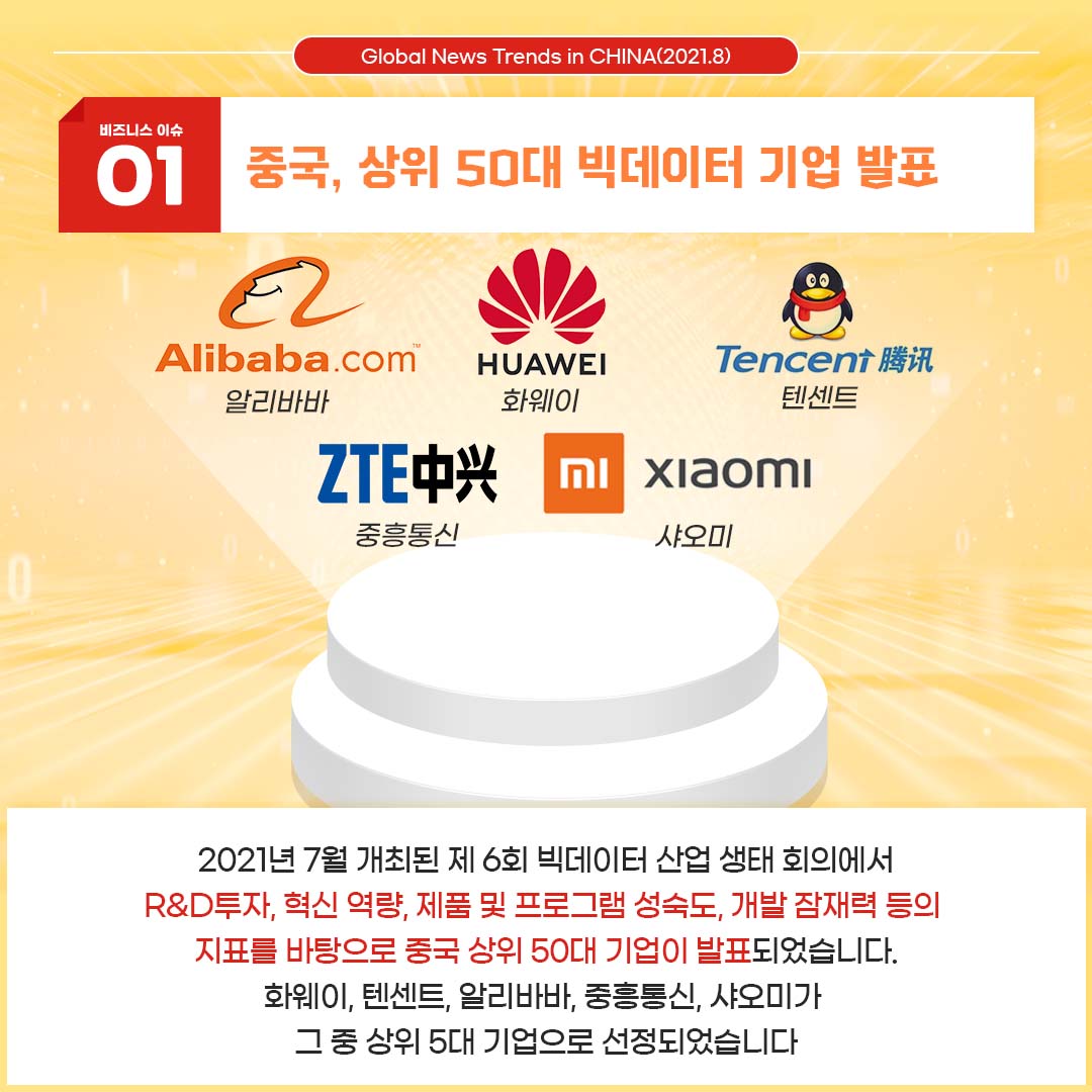 첫 번째 이슈는 '중국, 상위 50대 빅데이터 기업 발표' 입니다.