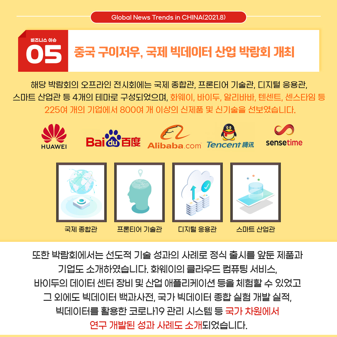 다섯 번째 이슈는 '중국 구이저우, 국제 빅데이터 산업 박람회 개최' 입니다.