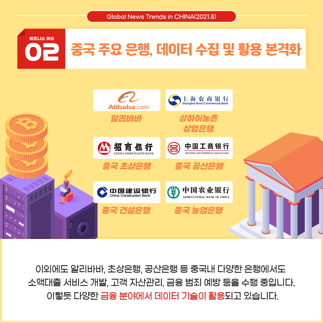 두 번째 이슈는 '중국 주요 은행, 데이터 수집 및 활용 본격화' 입니다.