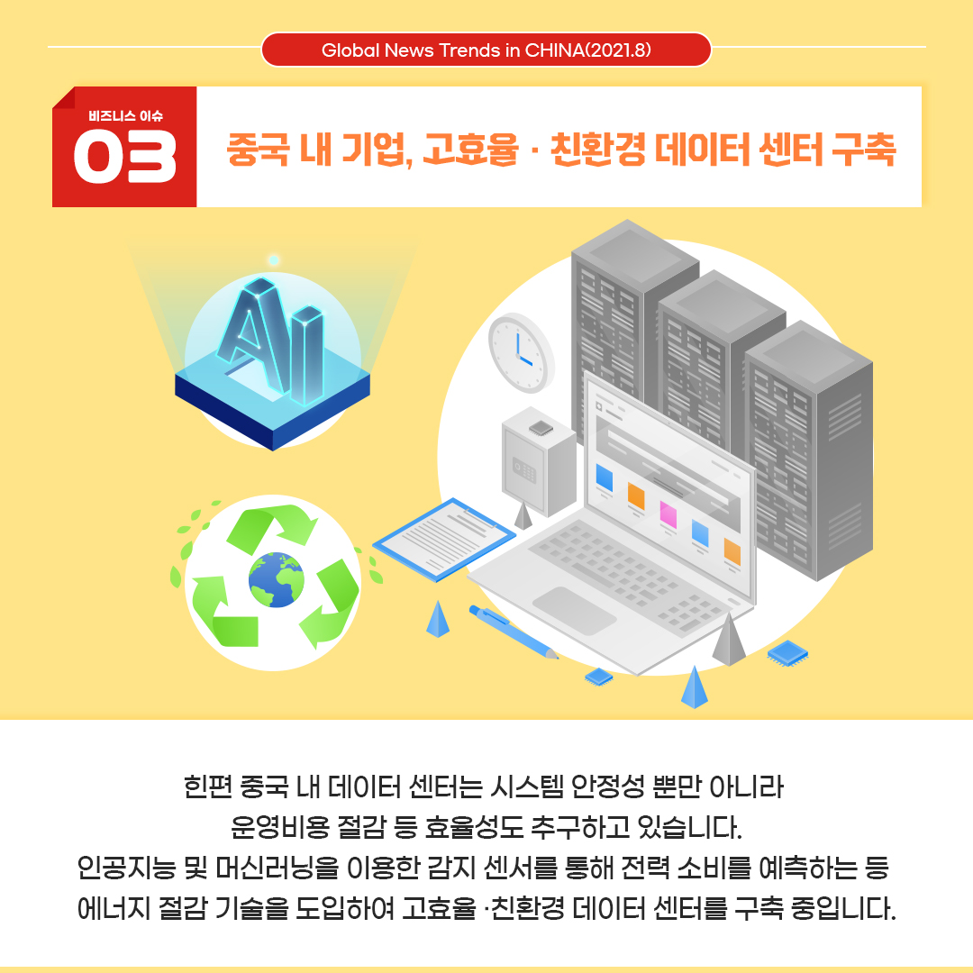 세 번째 이슈는 '중국 내 기업, 고효율 · 친환경 데이터 센터 구축' 입니다.