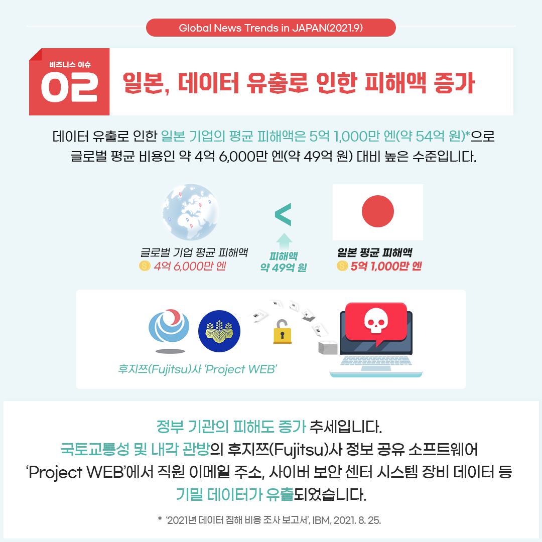 두 번째 이슈는 '일본, 데이터 유출로 인한 피해액 증가' 입니다.
