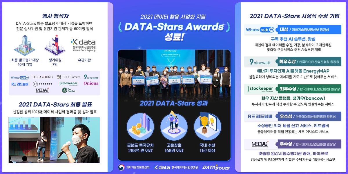 ‘2021 DATA-Stars(데이터 활용 사업화 지원) 최종 발표평가 및 시상식' 이 성황리에 마무리되었습니다!
