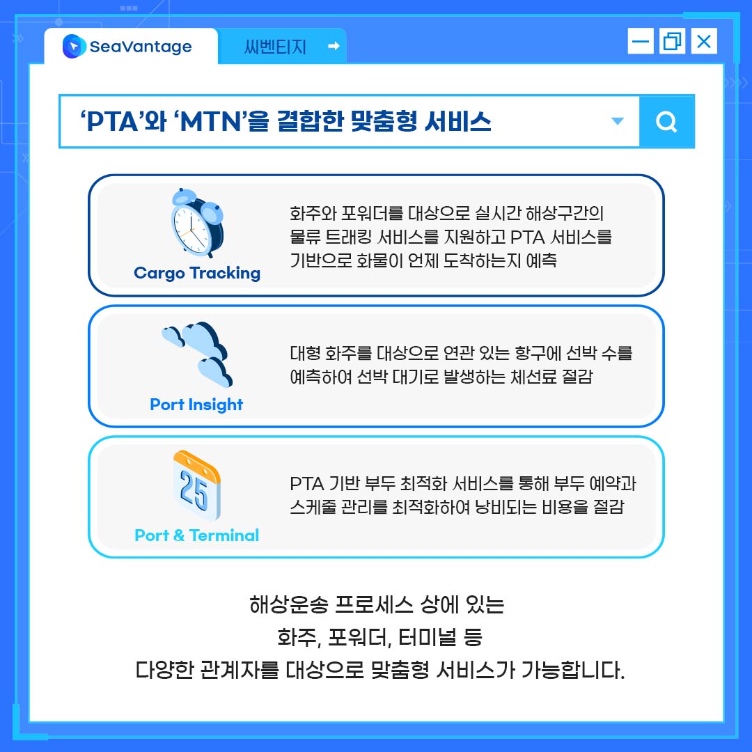 '씨벤티지'는 해상운송 프로세스 상에 있는