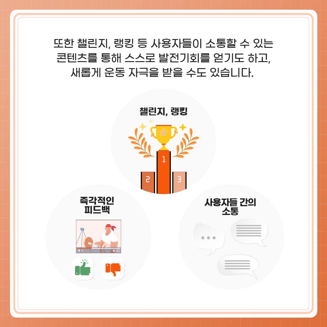 또한 챌린지, 랭킹 등 사용자들이 소통할 수 있는 콘텐츠를 통해