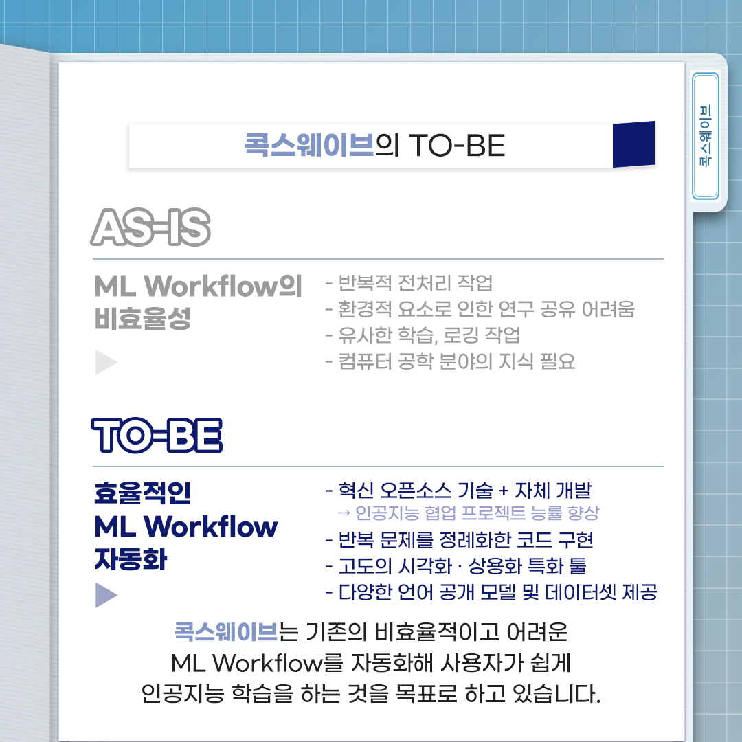 '콕스웨이브'는 기존의 비효울적이고 어려운 ML Workflow를 자동화해