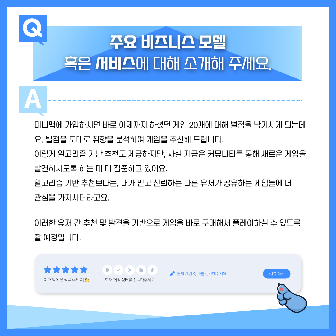 별점 부여와 취향 분석을 통해 새로운 게임 추천과 게임 친구를 만나보세요.
