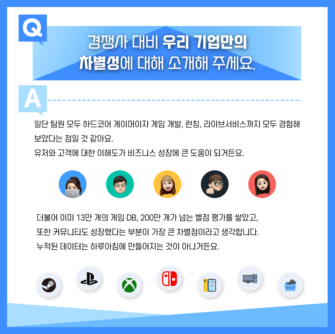별점 부여와 취향 분석을 통해 새로운 게임 추천과 게임 친구를 만나보세요.