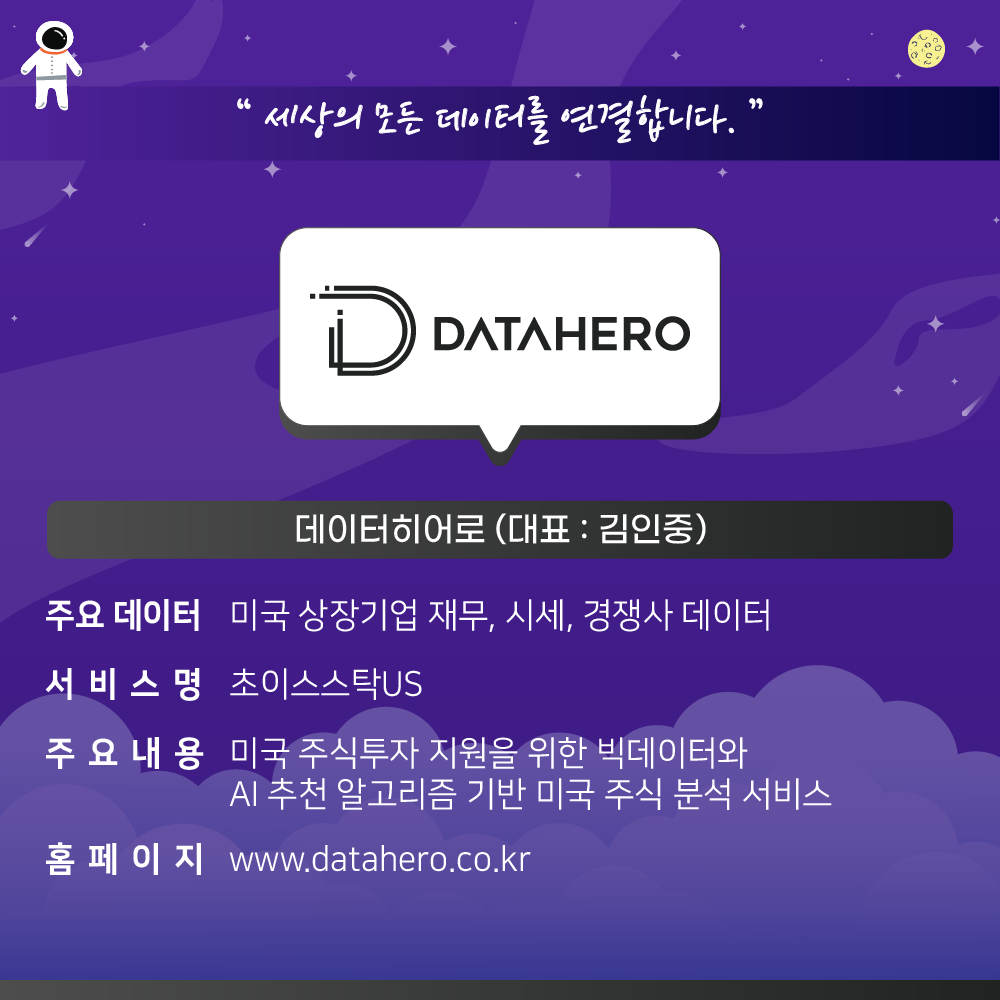 첫번째 기업은 바로 데이터히어로 (대표:김인중)입니다!