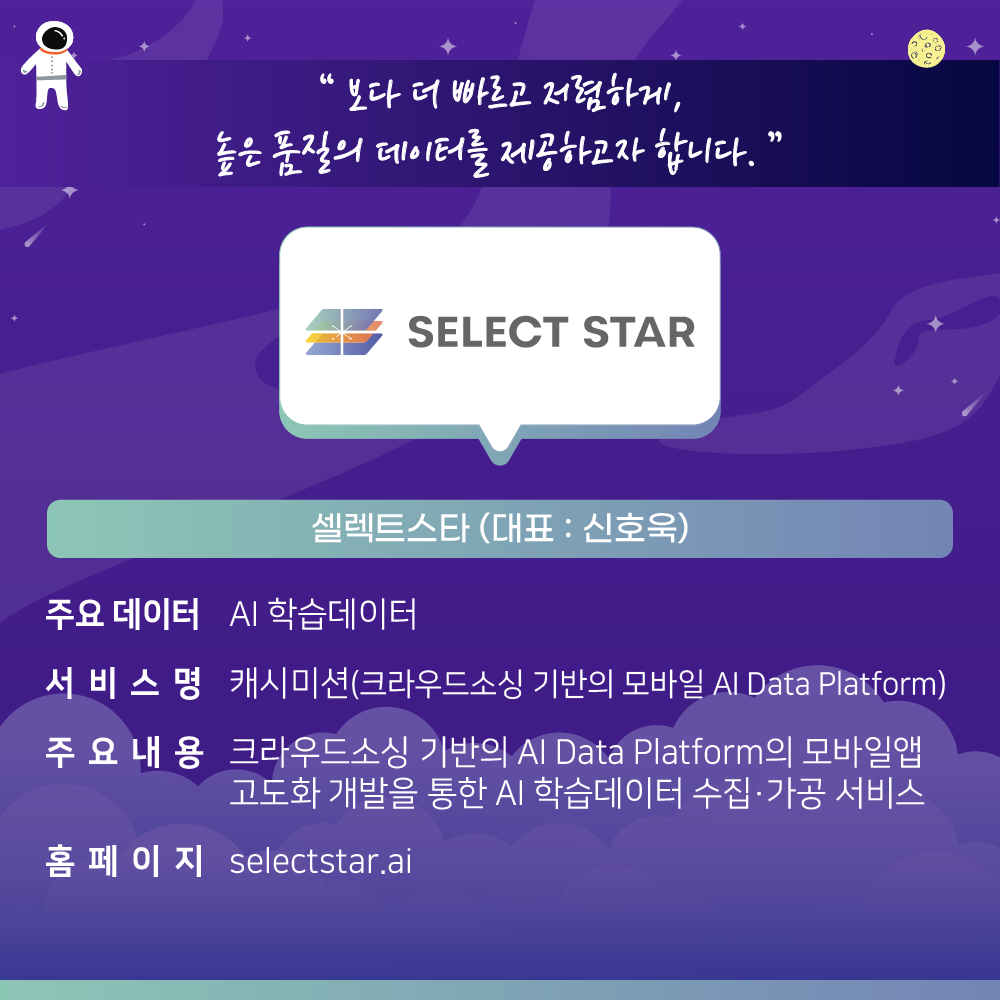 다섯번째 기업은 셀렉트스타 (대표:신호욱)입니다~!