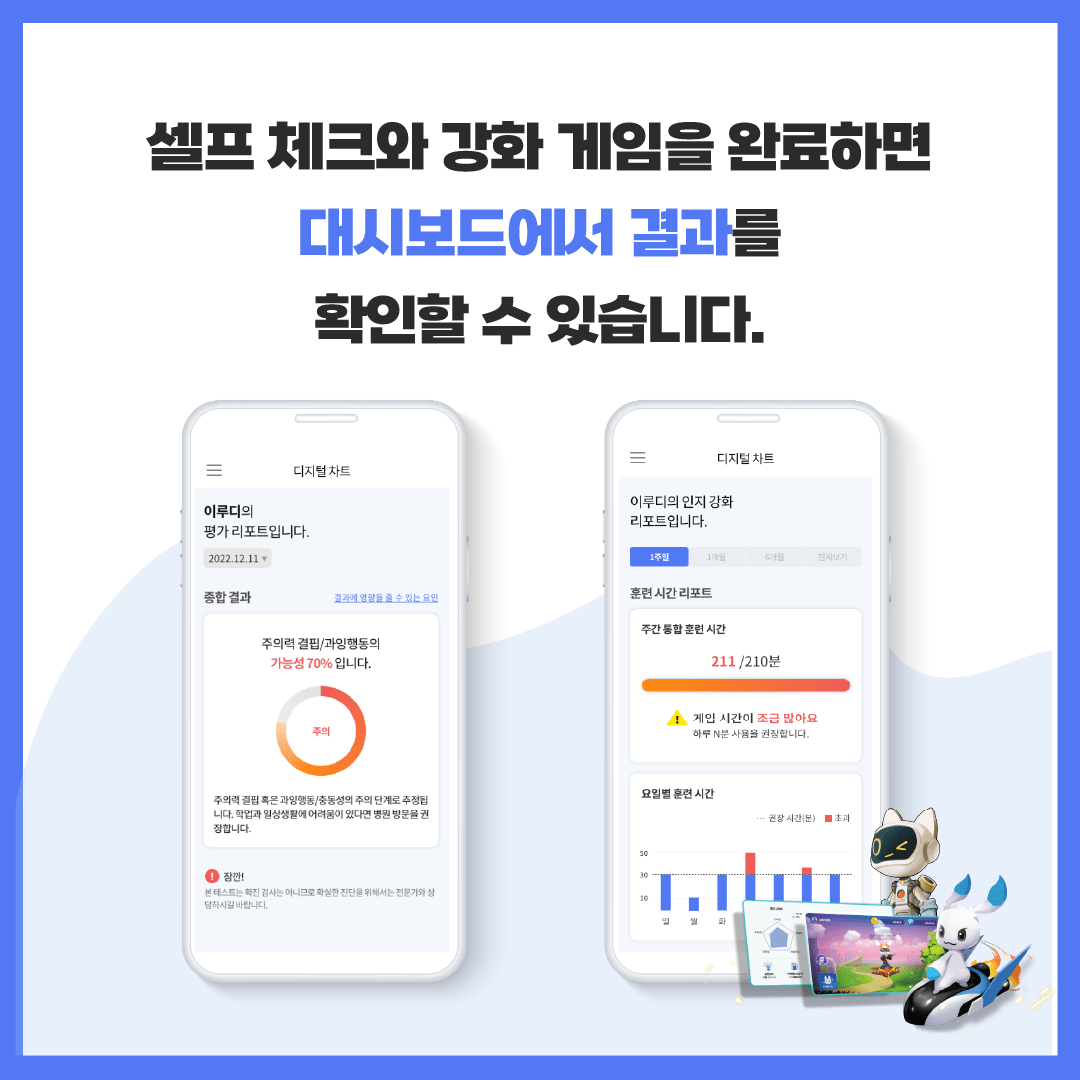 그 후 보호자는 결과 대시보드에서 아동의 인지 능력을 디지털 차트로 확인할 수 있습니다.