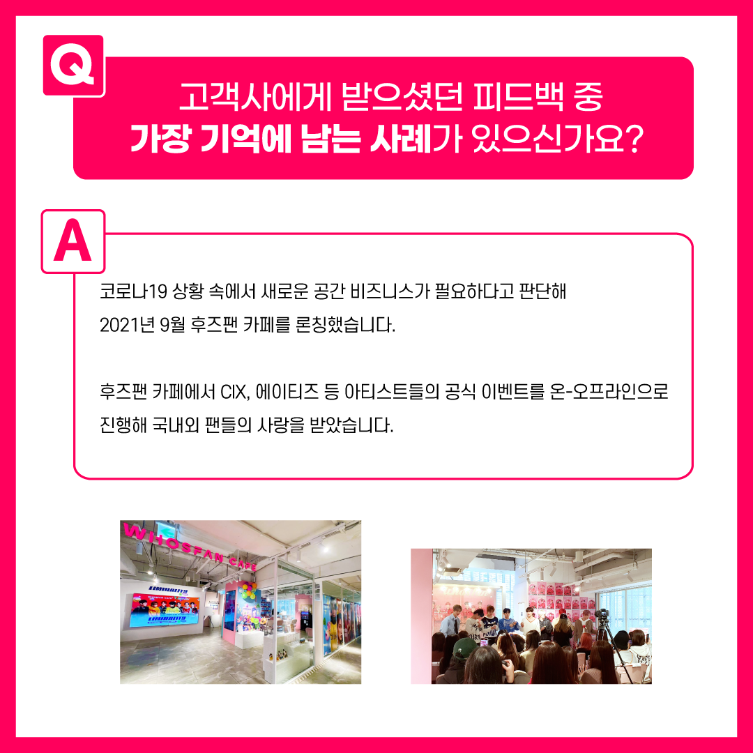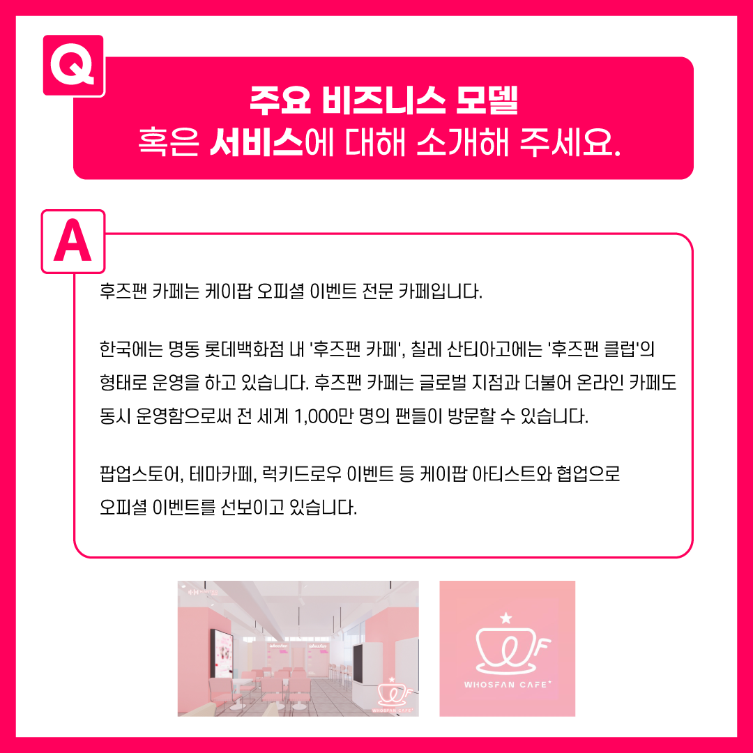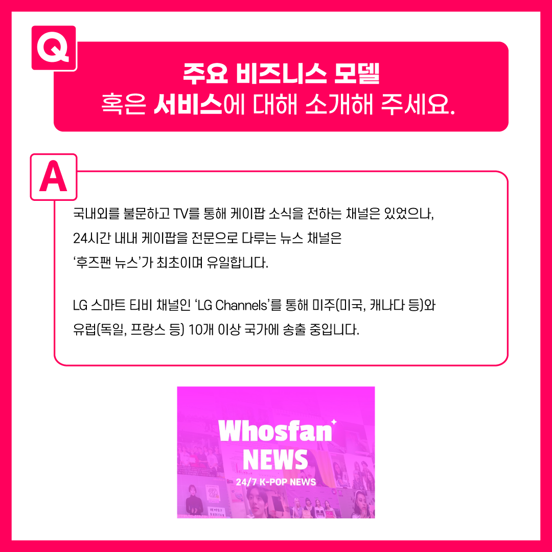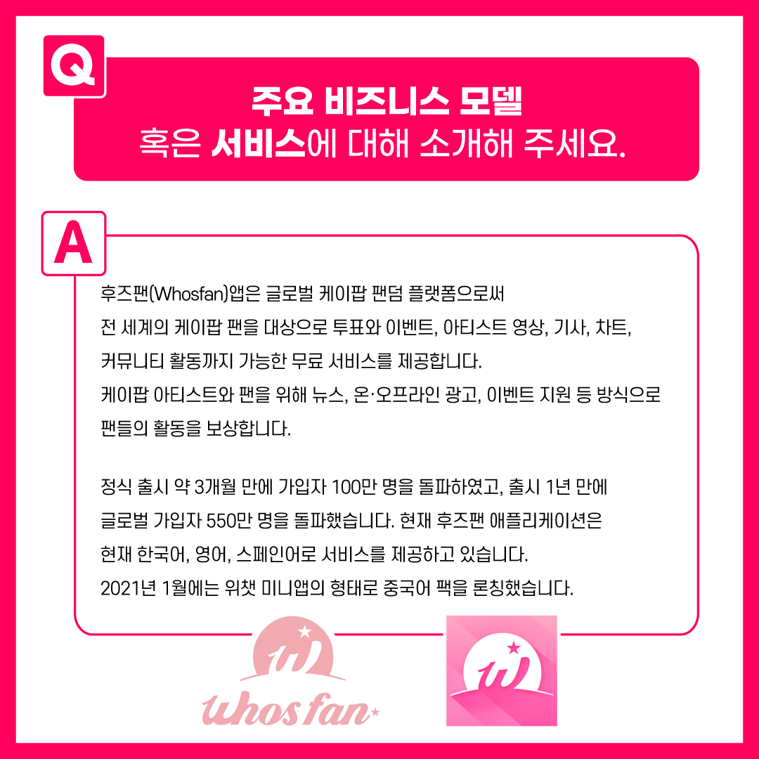 글로벌 K-POP 팬덤 플랫폼 '후즈팬'을 운영하고 있습니다.