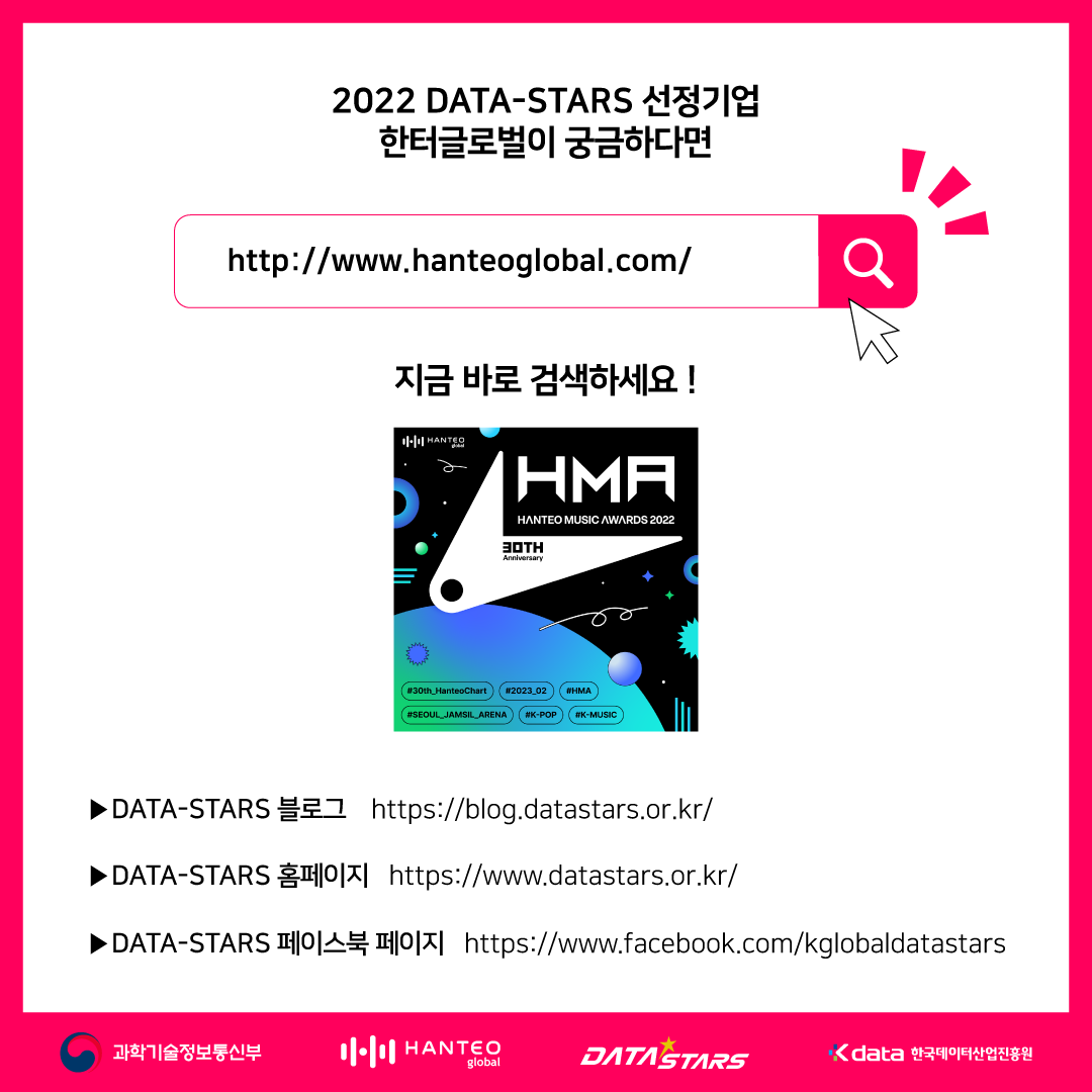 음악 빅데이터 기반 글로벌 K-POP 플랫폼 한터글로벌 : http://hanteoglobal.com/