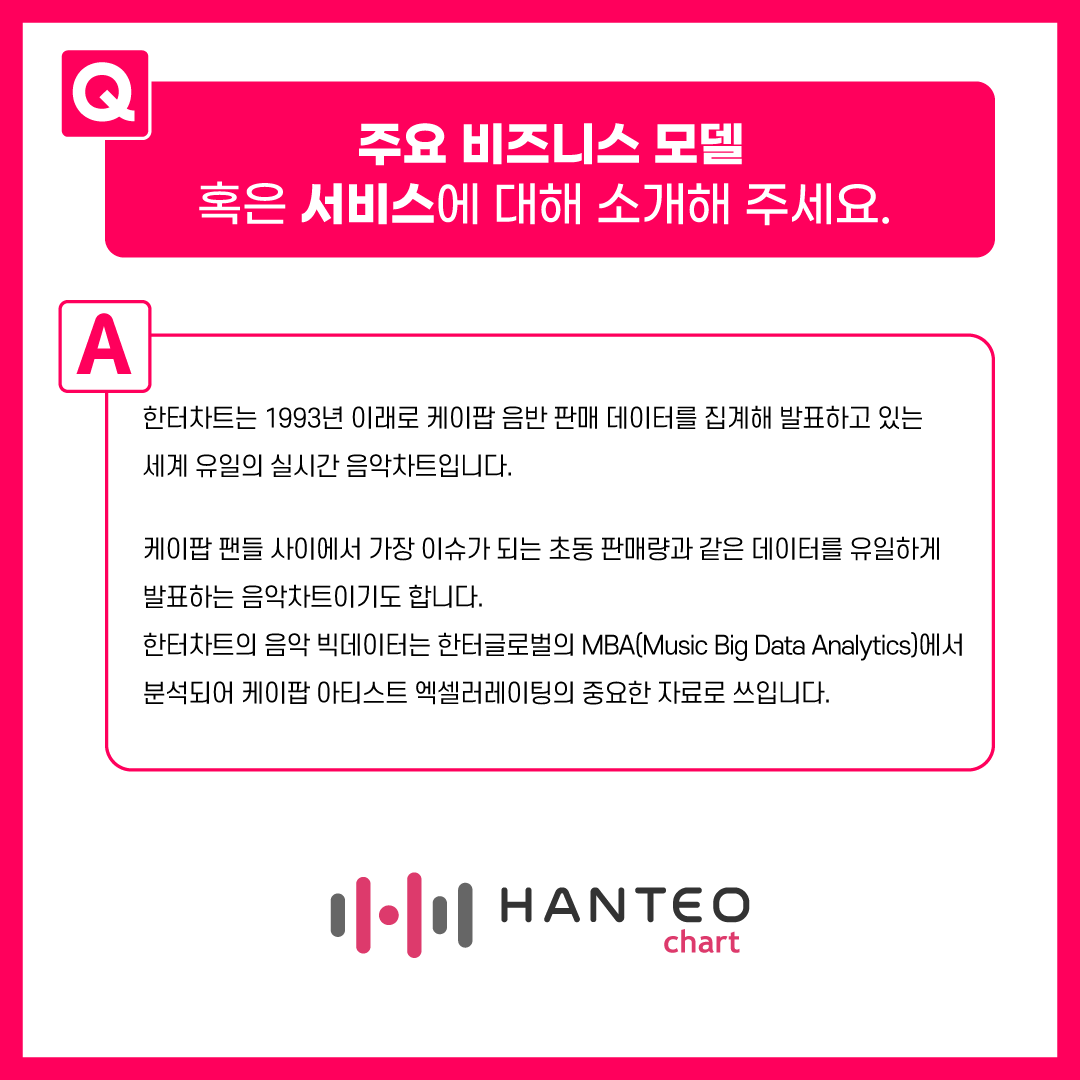 한터글로벌은 음악 차트 '한터차트'와 K-POP 빅데이터를 기반으로 한